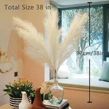 Show moreIntroducing the **Wttisel 10 Stems Pampas Grass Decor** – the ultimate solution for adding a touch of elegance and natural beauty to your home or special events! Each set features **10 stunning faux pampas grass stems**, meticulously crafted to replicate the lush and fluffy appearance of real pampas grass. With an impressive length of **38 inches (97 cm)**, these versatile stems can be arranged to suit any height, allowing you to create a customized display that perfectly fits your decor. The unique design includes **5 branches per stem**, giving you a full, dense look that effortlessly enhances your living space without the need for maintenance.