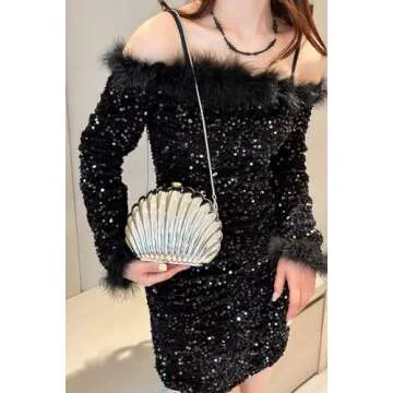 WuDiaoer Women Sparkly Acrylic Clutch Purse Seashell Evening Bag Metallic Acrylic Handbag Shiny Bride Purse for Party, Silver