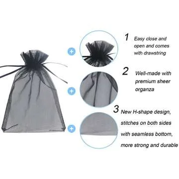 Wudygirl 100pcs Drawstring Organza Bags 5 x 7 Inch Black Transparent Jewelry Lipstick Pouches Baby Shower Party Wedding Holidays Favor Seashell Candy Favor Bags(Black 5x7'')