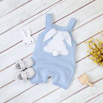 Wugugu Newborn Baby Boy Clothe Knit Romper Cap Christmas Long Sleeve Outfit Infant Girl Security Crocheted Sweater Jumpsuit Hat Easter Sleeveless Set Azure blue 12-18 Momths