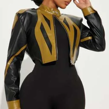 Wuitrie Womens Faux Leather Jacket Print Cropped Jacket Long Sleeve Zipper Motorcycle Bomber Jacket Vintage Streetwear