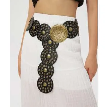 WULIQIUQIU Wide Disc Belt for Women Boho Concho Leather Belts Vintage Western Waist Belt