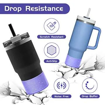 WUQID 2 Pack Bling Silicone Boot Compatible with Stanley Quencher Adventure 40oz & Stanley IceFlow 20oz 30oz, Reduces Dents Protective Silicone Water Bottle Bottom Cover Sleeve