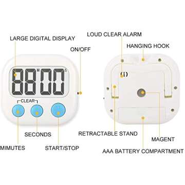 WUTL 11 4 Pack Digital Kitchen Timer Strong Magnetic Electronic Countdown and Count Up, Loud Alarm Small Size