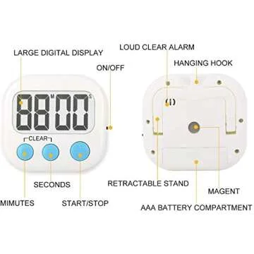 Introducing the **WUTL 11 4 Pack Digital Kitchen Timer**, the perfect companion for culinary enthusiasts and busy educators alike. These compact yet powerful timers boast a strong magnetic back that easily attaches to any metal surface, making them exceptionally convenient for use in kitchens, classrooms, or even on playgrounds. With a large, clear digital display, you can easily read the countdown from across the room, ensuring you never miss a beat while preparing your favorite dishes or managing classroom...