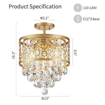 Show moreIntroducing the WUZUPS Crystal Drum Chandelier Flushmount Ceiling Light, a stunning modern lighting fixture that is designed to add elegance and charm to any room. With its dimensions of 16.3 inches high and 13 inches wide, this chandelier strikes the perfect balance between size and eye-catching appeal. The unique design features sparkling glass crystals that exude sophistication, creating a luxurious atmosphere wherever it is placed. The golden finish amplifies the chandelier’s aesthetic, making it a fitting centerpiece for diverse settings like entryways, kitchens, or dining areas. Transform your space effortlessly with this exquisite lighting solution that not only illuminates but beautifies your environment.