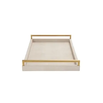 WV 17.8 x 11.8” Ivory Shagreen Large Serving Tray with Gold Handles for Ottoman