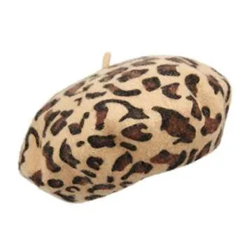 WW004 Winter 100% Wool Warm French Art Basque Beret Tam Beanie Hat Cap (Leopard Khaki)