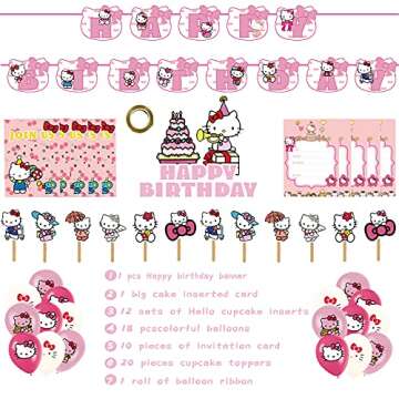 Show moreTransform your child’s birthday celebration into a whimsical adventure with the WXBMY 44PCS Cute Kitten Birthday Party Supplies. This exciting party kit is thoughtfully designed to cater to the imaginative spirit of kids, featuring a delightful assortment of 44 high-quality pieces that includes everything you need for a memorable birthday bash. Each set includes 1 Happy Birthday banner, 12 unique cake insert cards shaped like popular game characters, 18 vibrant balloons, 10 charming invitation cards, 20 adorable cupcake toppers, and a convenient roll of balloon ribbon. Crafted with non-toxic and odorless materials, your little ones can enjoy the festivities worry-free while surrounded by models showcasing their favorite cartoon kitten themes!