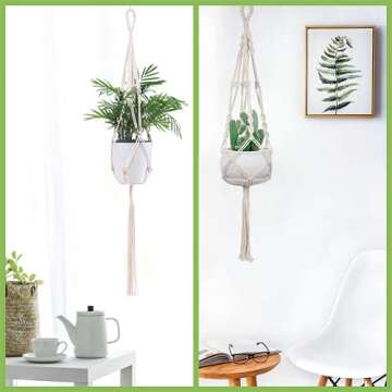 Show moreTransform your living space into a serene botanical oasis with our WXS-CHALL 4 Pack Macrame Plant Hanger. Handcrafted from durable, high-quality cotton rope, these stylish hangers are not only functional but also serve as a stunning decorative accent for any home. Perfect for both indoor and outdoor settings, each hanger comes with beautiful tassels that enhance your boho vibe. This thoughtfully curated set includes four distinct styles, offering versatility to complement various decor themes. Each hanger is designed to provide secure plant support, brilliantly showcasing your favorite greenery while ensuring a tangle-free experience.