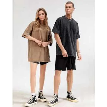 Wyeysyt 3 Pack Men's Oversized T Shirts Vintage Baggy Tee Cotton Loose Short Sleeves Casual Acid Wash Shirts Unisex Tops(BlackGreyKhaki-M)