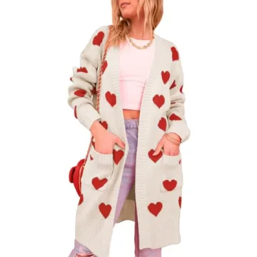 Wyeysyt Women 2023 Long Cardigans Love Heart Open Front Sweater Chunky Casual Knit Pocketed Cardigan Sweaters(Apricot-L)