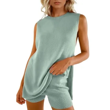 Show moreStep into summer with the Wyeysyt Women's Summer Sweater Set, a stunning two-piece outfit that embodies the essence of effortless chic. Featuring a trendy sleeveless tunic top adorned with a classic crew neckline and stylish side slits, this set showcases a modern slim fit that flatters your figure beautifully. The accompanying high waist knitted shorts complete this fashionable ensemble, making it the perfect choice for beach outings or casual summer events. Whether you’re heading to a beach volleyball game or simply enjoying the sun, this outfit is designed to turn heads and keep you comfortable.