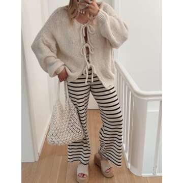 Show moreIntroducing the stunning Wyeysyt Women's Tie Front Bow Cardigan, where comfort meets chic in a delightful oversized design. This cardigan showcases a luxurious chunky knit texture that not only keeps you warm but also elevates your style quotient. Crafted for the modern woman, this long-sleeve, open-front cardigan features a unique tie-front bow detail, making it a statement piece that can effortlessly transition from casual outings to smart gatherings.