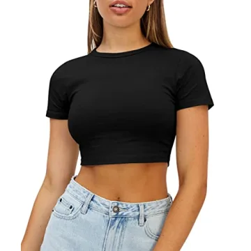 These tops not only look fabulous, but they also fit just right! Available in classic colors such as black, white, and olive, there's a perfect match for every outfit. The cropped length pairs effortlessly with jeans, shorts, skirts, or yoga pants, making it a languorous piece that transitions from a casual brunch to a workout session seamlessly. Designed for style, the short sleeves and scoop neckline not only offer a trendy aesthetic but also provide a comfortable fit that allows you to dress it up or down according to the occasion.