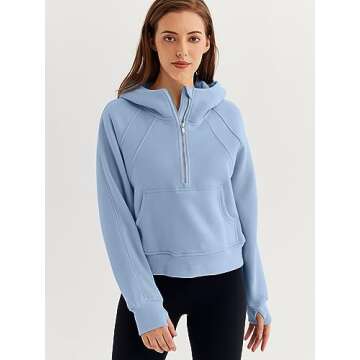 WYNNQUE Womens Hoodies Oversized Sweatshirts Half Quarter Zip Pullover Cropped Long Sleeve Fall Outfits Fashion Clothes Skyblue S