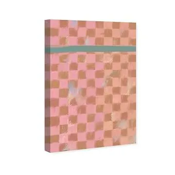 Wynwood Studio Abstract Contemporary Wrapped Canvas Art - Checkered Fabric, Wall Art for Living Room, Bedroom, and Bathroom, 24" x 36", Pink and Brown Home Decor