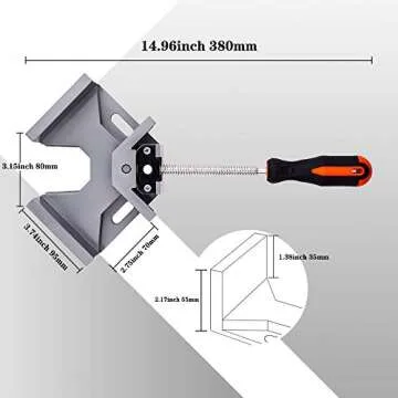 Show more Introducing the WYQYQ 4pcs Corner Clamp, the ultimate solution for woodworking enthusiasts and professionals alike. Made from high-quality aluminum alloy die-casting, this right angle clamp ensures both strength and durability, making it a reliable tool for your projects. With a maximum clamping range of approximately 2.75in (70mm), a jaw width of 3.74in (95mm), and a jaw depth of 1.38in (35mm), these clamps are designed for precision and efficiency. The non-slip rubber handle offers comfort during use, allowing you to work for extended periods without discomfort.