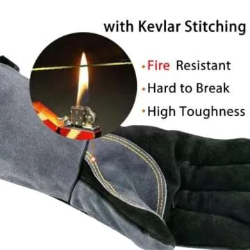 WZQH 16 Inches,932℉,Leather Forge Welding Gloves, Heat/Fire Resistant,Mitts for BBQ,Oven,Grill,Fireplace,Tig,Mig,Baking,Furnace,Stove,Pot Holder,Animal Handling Glove.Black-gray