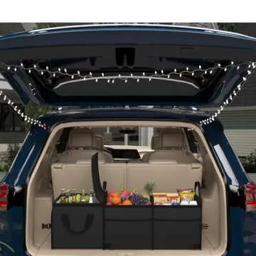 X-cosrack Trunk Organizer with Pack Portable Insulation Cooler Bag-Collapsible Multi-Compartment -Large Capacity Washable Car Storage Bag-To Suit SUV, Truck, Automotive, Any In-vehicle, Black