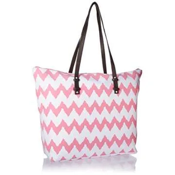 Stylish X-Large Pink Chevron Print Beach Bag Tote - Functional & Fashionable