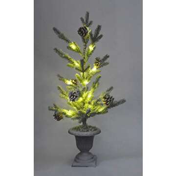 X-nego 26" Frosted Alpine Balsam fir pre-lit Christmas Pine Tree Snowy Cones Battery Operated Warm White LED Lights Windowsills, Mantle Display Table Tops