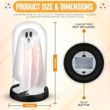Unlike many ordinary Halloween decorations that rely on plastic and lack personality, the X1 Light Up Ghost in Glass Cloche offers a sophisticated and vibrant visual appeal. This product's careful craftsmanship with glass ensures a memorable atmosphere compared to competitors that may struggle with durability or aesthetic charm. While other similar products often have limited visibility or fragile designs, the sturdy base and clear cloche of our ghost let you showcase its playful essence all season long.