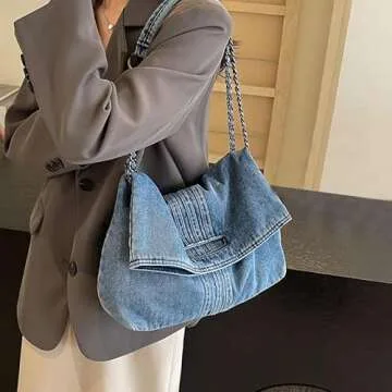 XACKWUERO Women Denim Shoulder Handbag: Retro Crossbody with Chain Strap