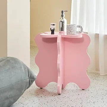 XBAOMING Mini Petal Coffee Table - Charming Pink Wave Side Table for Any Room