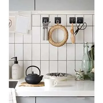 xdgeLoad Adhesive Hooks Black Matte Towel Hooks 4 Packs, Heavy Duty Stainless Steel Wall Hooks, Stick on Hooks for Hanging Coat/Hat/Towel/Bathrobe/Key