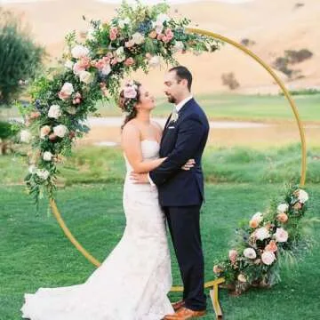Show more Introducing the Xeapoms 7.2ft Round Backdrop Stand, a beautifully crafted and versatile balloon arch stand designed to elevate any celebration. Ideal for a variety of occasions such as weddings, birthdays, baby showers, graduations, anniversaries, and Christmas events, this stunning gold arch provides a stylish and personalized touch to your decor. Made from high-quality steel alloy, this eye-catching arch is not only aesthetically pleasing but also sturdy and reliable, ensuring it stands tall and stable in both indoor and outdoor settings. Each purchase includes an easy assembly guide, so you can quickly set up your charming backdrop and focus on what truly matters – enjoying your event with friends and family.