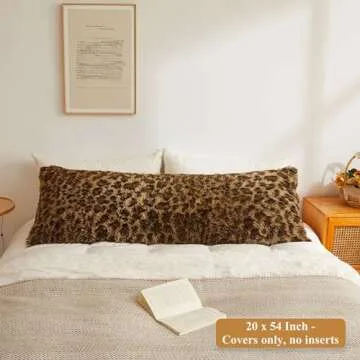 XeGe 20x54 Fluffy Leopard Print Body Pillow Cover, Cheetah Print Plush Fuzzy Faux Fur Body Pillowcase with Zipper, Farmhouse Shaggy Furry Long Pillow Cover for Pregnant Women Side Sleeper, Brown