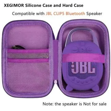 Show more Introducing the **XEGIMOR Silicone Cover and Hard Carrying Case for JBL Clip 5 Portable Bluetooth Speaker**, the ultimate protection package designed exclusively for your JBL Clip 5 speaker. This stylish set not only dresses up your device but also ensures it remains safe from daily wear and tear. Crafted with precision, the silicone cover and hard case are ideal companions for those who love on-the-go music. With a vibrant **purple hue**, this accessory set adds personality while providing unbeatable support.