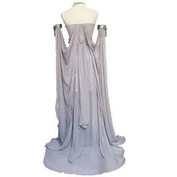 Xfang Women's Chiffon dress Halloween Cosplay Costume Grey Long Train Dress