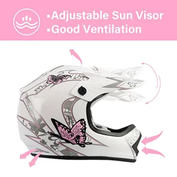 XFMT DOT Youth Kids Dirt Bike Helmet - Full Face Safety Gear with Goggles & Gloves in Pink Butterfly