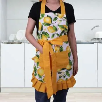 Show more Introducing the Xiabing Women's Cotton Polka Halter Apron, a delightful blend of functionality and style perfect for any kitchen enthusiast or gardening guru. Made from high-quality cotton, this apron not only looks charming with its playful polka dot design in refreshing lemon tones, but it is also designed for ultimate comfort and versatility. With adjustable waist ties, it fits a range of body types, ensuring that you can focus on what you love—cooking, baking, or tending to your garden—without any discomfort. The halter style gives an elegant touch while providing full coverage, so you can be worry-free as you whip up your favorite recipes.