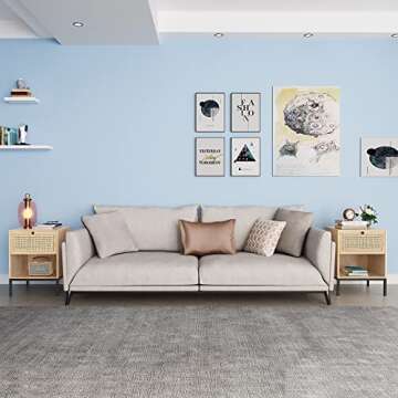 XIAO WEI Natural Rattan Nightstand Set of 2 – Boho Style, Functional & Elegant