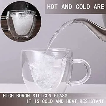 Xiaolanwelc@ Glass Tea Cup With Handle Heart Shaped Clear Double Wall Lovers Coffee Afternoon Tea Double Layer Glass Mug (240ml, clear)