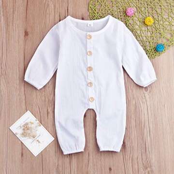 XiaoReddou One Piece Outfits Baby Solid White Rompers with Button