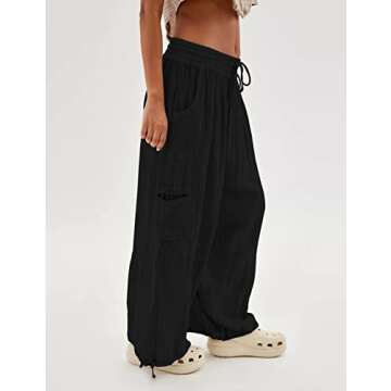 Show moreStep into summer with style and functionality with the Xiaoxuemeng Women's Baggy Utility Pants. Designed with a contemporary twist, these high waisted wide leg cargo pants combine comfort, trend, and practicality for women who value versatility in their wardrobe. Made with lightweight, breathable fabrics, they make an ideal choice for any casual outing. The spacious pockets provide great utility for day-to-day items, keeping everything you need within easy reach while maintaining a chic appearance. Available in classic black, these pants seamlessly transition from day to night, making them a must-have in any fashion-savvy woman’s collection.