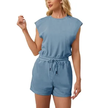 Xiaoxuemeng Women’s Open Back Rompers Casual Loose Fit Workout Shortsie One Piece Active Tracksuits Sweatsuits (Dusty Blue-M)
