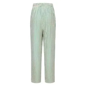 XIBAOBAO Women's Green White Striped Seersucker Pants Pinstripe High Waist Drawstring Lounge Pants Beach Lightweight Palazzo Trousers XL
