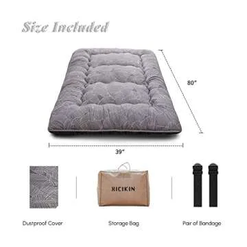 Show moreIntroducing the **XICIKIN Japanese Floor Mattress**: a versatile and essential addition for those seeking comfort and convenience in their sleeping arrangements! With dimensions of 39 inches wide by 80 inches long and a lightweight design of only 10 lbs, this twin-size mattress is expertly crafted for portability and ease of storage. The premium microfiber fabric offers a soft, breathable surface, while the high-density memory foam filling ensures optimal support for a restful night's sleep. This futon mattress not only shines in quality but also replicates the revered Japanese sleeping experience, combining tradition with modern practicality.