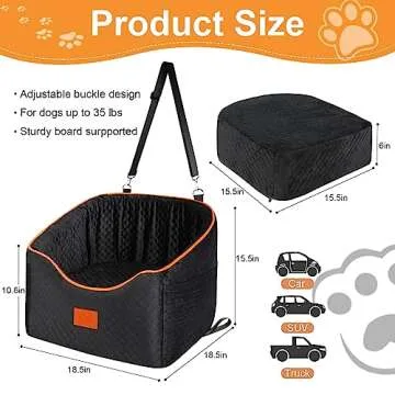 Show more This luxurious dog car seat is the perfect solution for pet owners who want to keep their furry friends safe, secure, and comfortable while on the go. Crafted with love and care, this innovative dog booster seat is designed for small puppies or one medium-sized dog weighing up to 30 lbs. Whether your cherished companion is a Yorkshire Terrier, Chihuahua, Pomeranian, Dachshund, or even a curious cat, they will undoubtedly appreciate the cozy embrace of this plush seat. Measuring 18.50 in (L) X 18.50 in (W) X 15.50 in (H), the elevated design allows your pet to enjoy a panoramic view out of the window, easing their anxiety during long journeys.