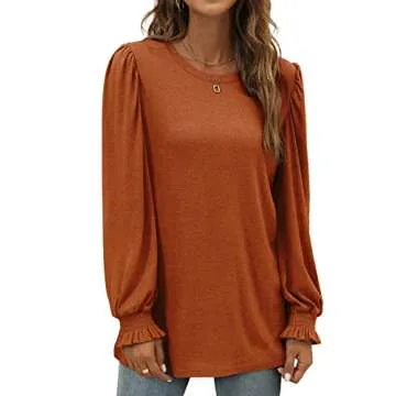 XIEERDUO Womens Plus Size Dressy Tops Long Sleeve Puff Sleeve Blouse Shirts Caramel S