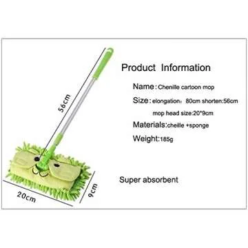Xifando Mini Microfiber Chenille Cartoon Flat Dust Mop for Children,Detachable,360 Degree Rotation, Extension-Type (Brown)