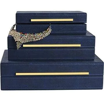 XIGEXIGE Navy Blue Shagreen Decor Storage Boxes Faux Leather Set of 3 Decorative Boxes, Large Modern men’s Jewelry Organizer Boxes with Lids For Home
