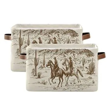 xigua Storage Basket Western Desert Cowboy Storage Bin with Handle, Large Storage Cube Collapsible for Shelves Closet Bedroom Living Room 1PC