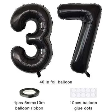Xihuimay Number 37 Balloons 40 inch Digital Balloon Alphabet 37 Birthday Balloons Digit 37 Helium Balloons Big Balloons for Birthday Party Supplies Wedding Bachelorette Bridal Shower, Black Number 37