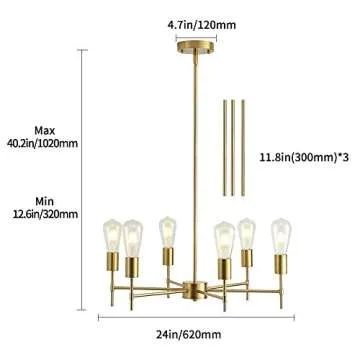 Xilicon Modern Sputnik Chandelier Light Fixture 6 Light Brushed Nickel Mid Century Pendant Lighting Ceiling Light for Dining Room Living Room Hanging